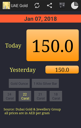 Today Gold Price Dubai UAE ให้แผนภูมิและกราฟสำหรับอัตราและข้อมูลย้อนหลัง ผู้ใช้สามารถซูมเข้า/ซูมออกเพื่อดูแผนภูมิและกราฟได้ดียิ่งขึ้น แอปยังรองรับการแสดงผล HD/retina แอปต้องการการเชื่อมต่ออินเทอร์เน็ตเพื่อใช้งาน และผู้ใช้สามารถติดต่อผู้พัฒนาเพื่อร้องเรียนหรือให้คำแนะนำได้