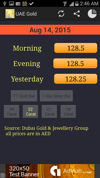 Today Gold Price Dubai UAE เป็นแอปพลิเคชันท่องเที่ยวและนำทางฟรีที่ให้ข้อมูลราคาทองแท่งแบบเรียลไทม์และอัพเดทล่าสุดในเมืองใหญ่ในสหรัฐอาหรับเอมิเรตส์ (UAE) แอปนี้ถูกพัฒนาโดย Mbrace LLC และมีให้บริการสำหรับอุปกรณ์แอนดรอยด์
